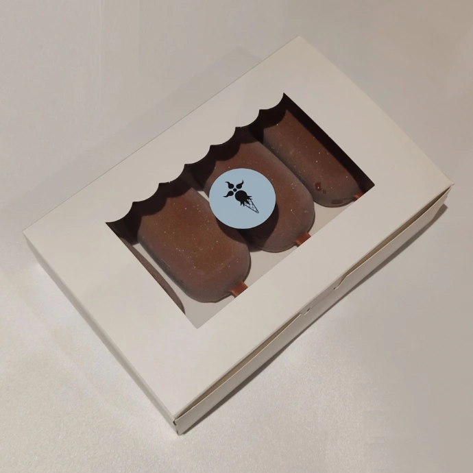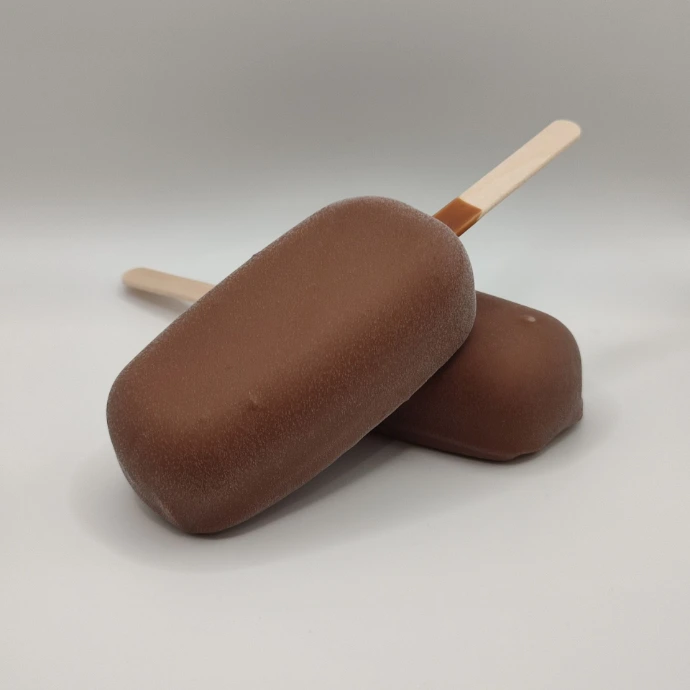 Une gamme de bâtonnets givrés vient de sortir du laboratoire ! Après plusieurs semaines de travail, voici le premier né de notre série. Découvrez le mariage très gourmand de la glace vanille pure gousse (gousses locales) avec un cœur fondant caramel, et un enrobage croquant chocolat au lait. Toujours 100% artisanal.